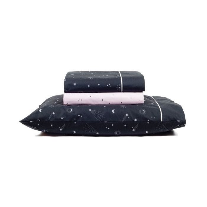 Prepare-se para uma decoração apaixonante com estampas coordenáveis e detalhes como o vivo nas palas do lençol e fronha.