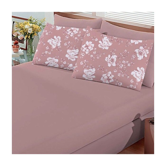 Jogo de Cama Buettner Solteiro Malha Moema 2 Peças Basic Rosê