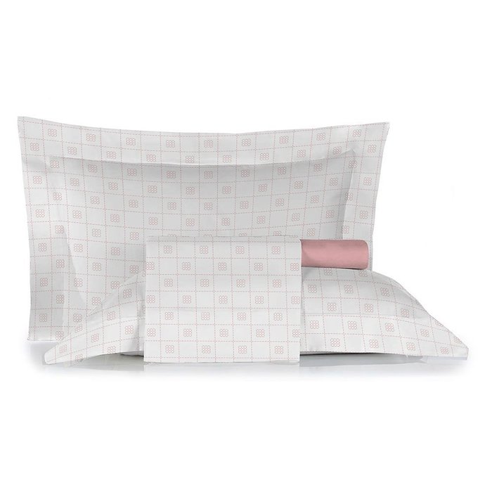 Jogo de Cama Casal 180 Fios Nova América - Nicole (7849) Branco/Rose