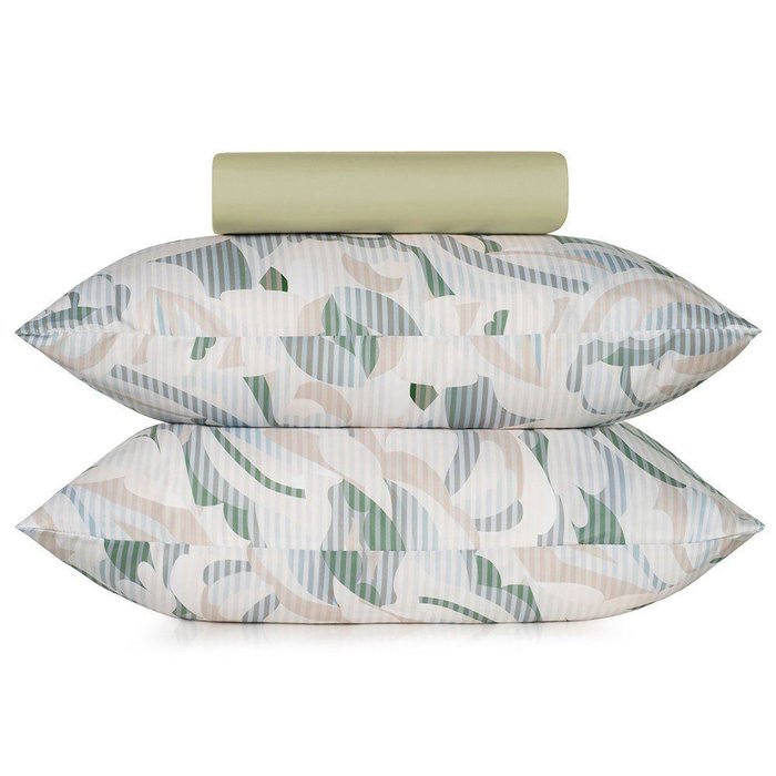 Jogo de Cama Casal 3 Peças Toque Acetinado Revival Estampado, Bege
