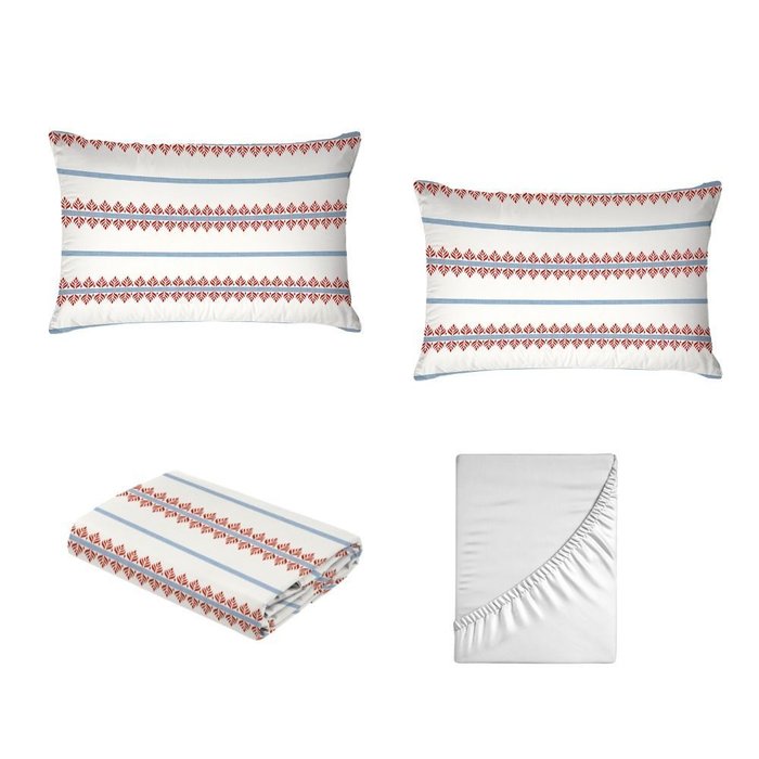 Jogo de Cama Casal 4 Peças 100% Algodão 180 Fios - Mavie (7866) Branco/Vermelho/Azul