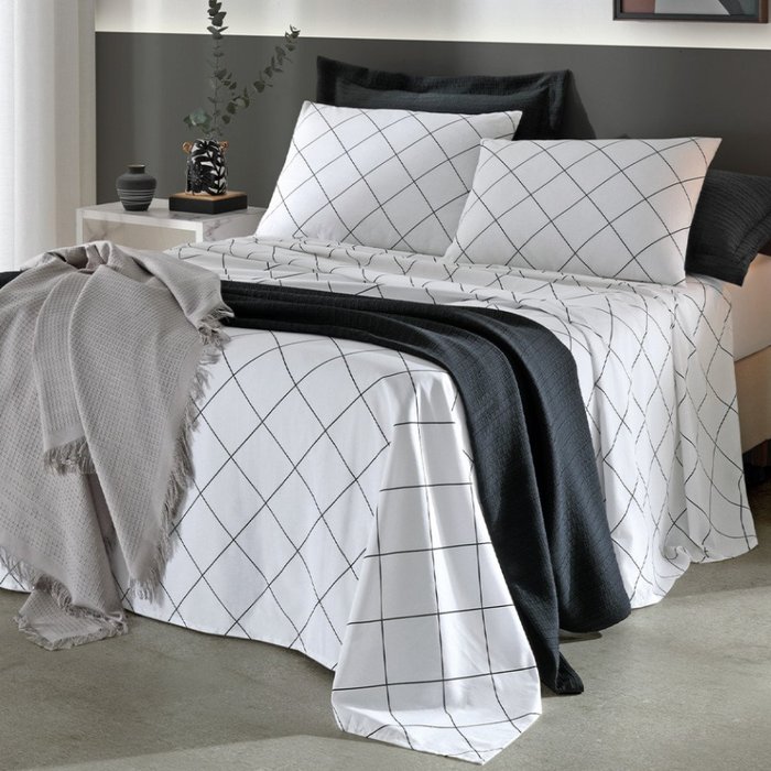 Transforme a sua cama em um verdadeiro refúgio de conforto e bem-estar com esse Jogo de Cama. Confeccionado com tecido 100 algodão, com percal de 130 fios, oferece um toque agradável e macio, além de ser resistente e com maior frescor.