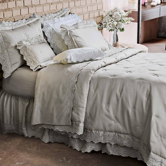 Produzido em tecido 100% algodão, cetim 400 fios. O modelo é caracterizado pelos bordados que nos remetem ao requinte e sofisticação. Butterfly como o nome já sugere nos brinda com lindo bordado de borboletas nas abas das fronhas e no virol do lençol sem elástico. Leve e macio, transmite toda a leveza das borboletas. A borboleta é considerada um verdadeiro símbolo de liberdade e mudança, suas formas orgânicas se unem formando uma composição harmoniosa! Nos transmitem tranquilidade. Kit composto por lençol virol, lençol com elástico e fronhas com abas bordadas. Perfeito para deixar a sua cama muito mais bonita. Foto meramente ilustrativa. Contém: 1 lençol de cima 220x240cm 1 lençol ajustável 140x190x35cm 2 fronhas 50x70cm INSTRUÇÕES DE LAVAGEM MARKEN FASSI • Sobre os bordados passar até 80ºC; • Lavar com sabão neutro; • Lavar até 60ºC processo suave; • Não alvejar ou branquear; • Não secar em tambor; • Passar até 110ºC; • Vapor pode causar danos irreversíveis; • Não limpar a seco. Dicas de conservação Catran: - Siga sempre as instruções de lavagem e conservação dispostas na etiqueta ou embalagem do produto. Características