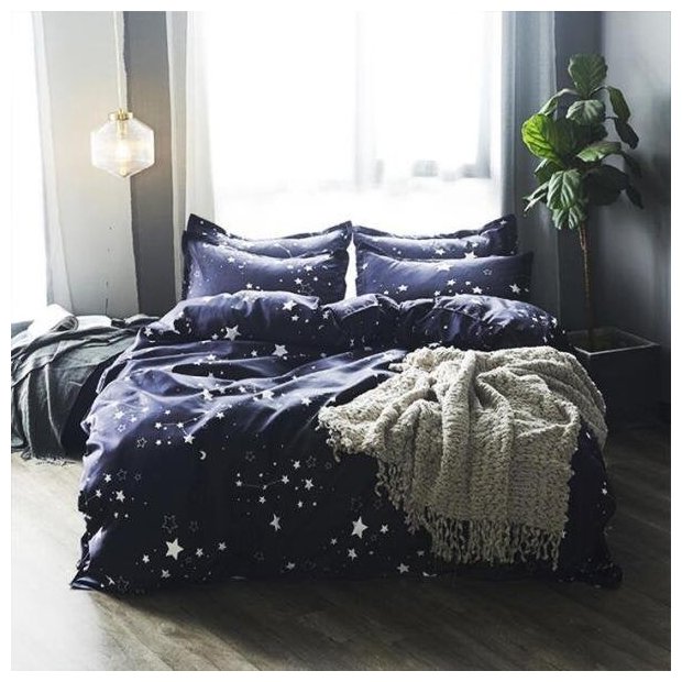 Jogo de cama casal comum STAR BLACK 6 peças com edredom.