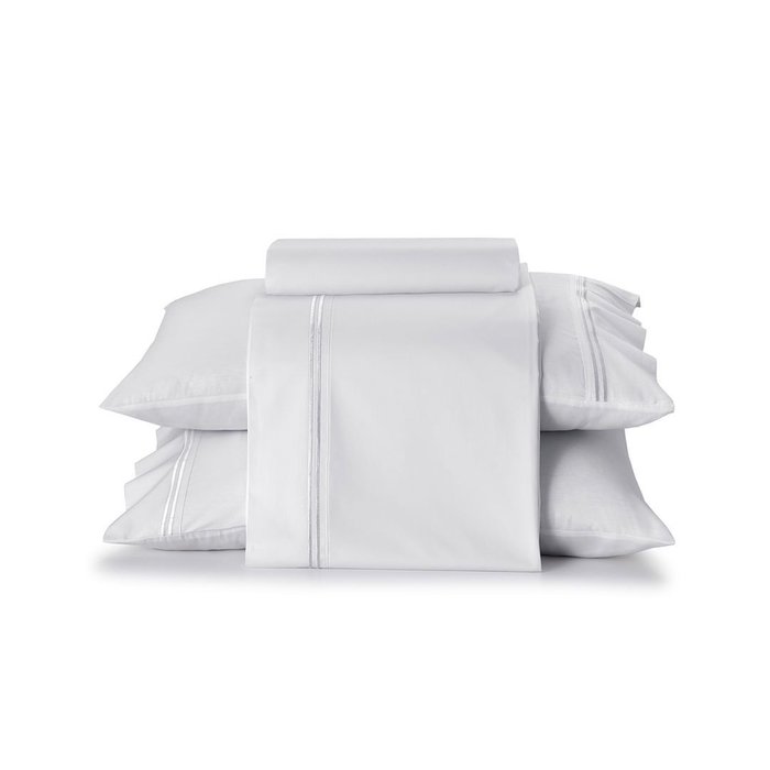 A excelência do produto se deve à técnica do fio penteado e à sua composição em tecido Percal, um tecido macio, durável e resistente ao desgaste, além de ter boa respirabilidade e fácil limpeza. Com a elegância do bordado e o toque final do lençol com pala e das fronhas com abas de 5,5 cm, o conjunto Atlantis eleva a decoração e o conforto do seu quarto.