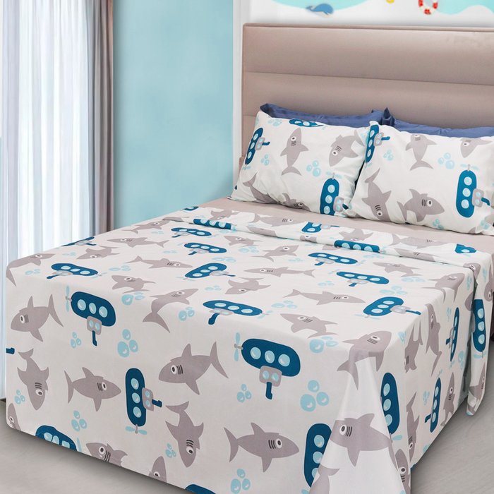 Jogo de Cama Casal Lençol Infantil 4 Peças Estampado BF Colchões TUBARAO