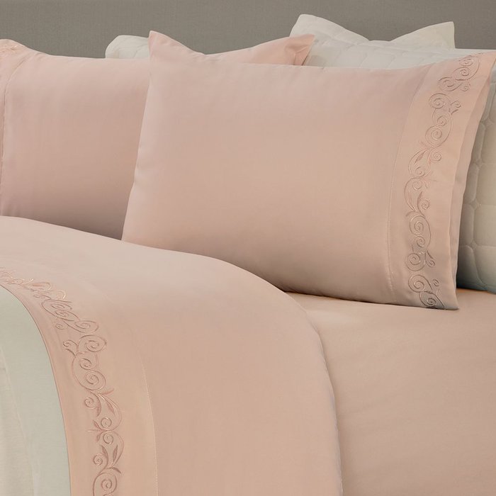 Jogo de Cama Casal Liso com Bordado 4 Peças - Peach - Bella Notte Peach