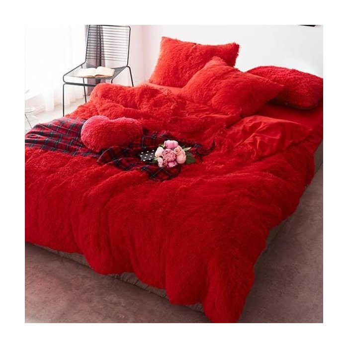 Jogo de cama 6 peças pelúcia Gabarse vermelho casal Queen.