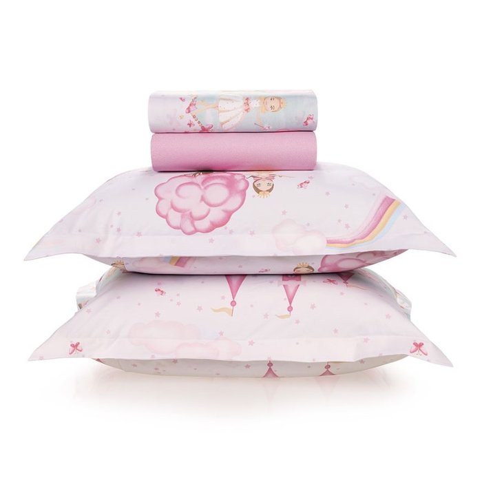 O Jogo de Cama Casal Infantil Karsten 180 Fios Percal 100% Algodão Reino Mágico traduz o encanto e magia dos castelos dos contos de Reino Mágico, possui fundo sutil em tom de rosa. Traz um conforto em seu lençol de cima, lençol de elástico e 2 fronhas, incomparável da sua confecção 100% algodão percal 180 fios.