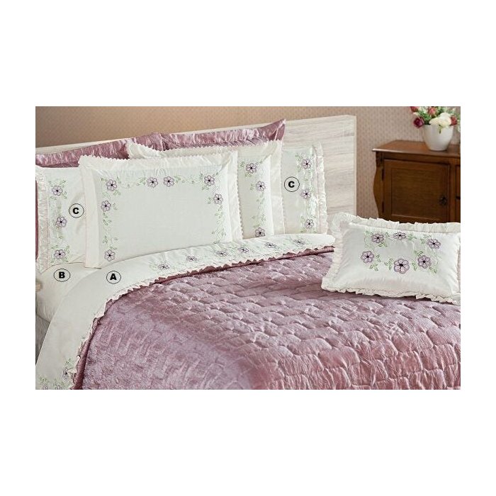 Jogo de cama de alta qualidade, proporcionando mais conforto, aconchego e maciez ao produto. Confeccionado em tecido Percal 180 fios, fronhas com acabamento bordados, é produzido com um rigoroso controle de qualidade, design charmoso e moderno, o kit com cores suaves transmite leveza e encaixa-se perfeitamente com qualquer tipo de decoração, trazendo mais beleza ao quarto.