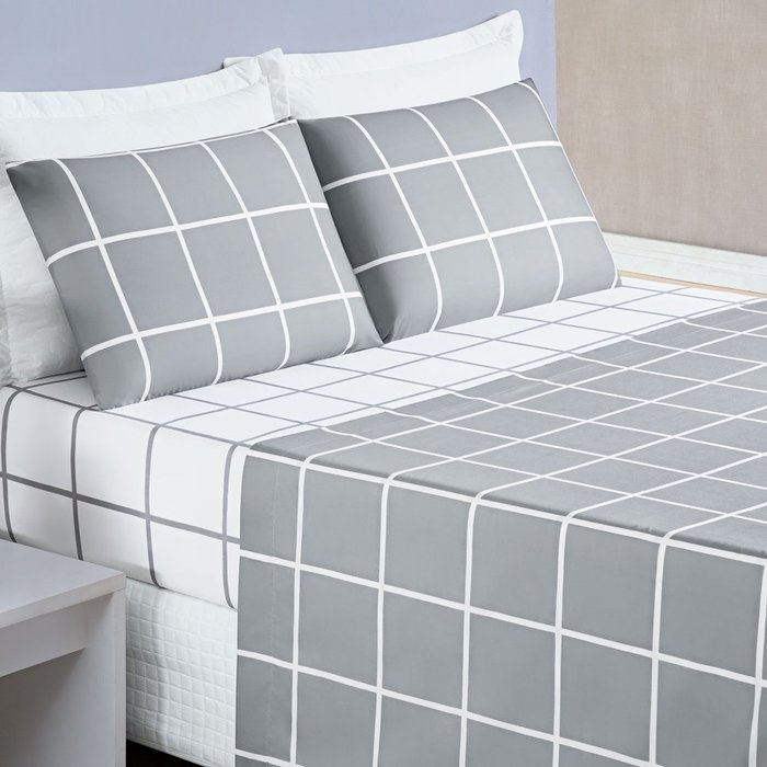 Jogo de Cama Com Lençol de Cima 200 fios Austin Queen 04 Peças - Cinza Bia Enxovais