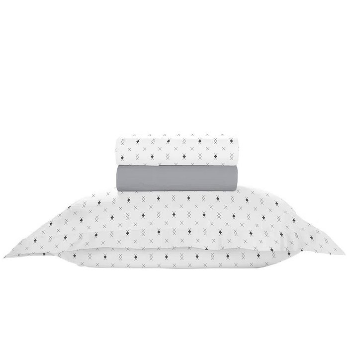 Jogo de cama solteiro de algodão completo, formado por 3 peças:_x000D_