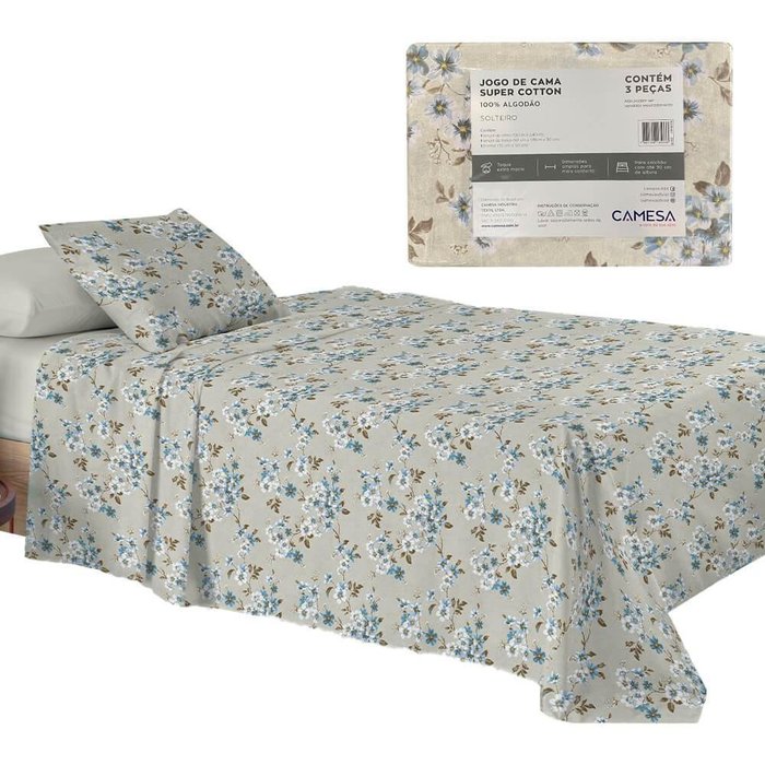 Jogo de Lençol e Fronha de Solteiro Super Cotton 120 Fios 3 peças - Camesa O Jogo de Cama de Solteiro da coleção Super Cotton, é produzido 100% em algodão 120 fios com toque extremamente macio.