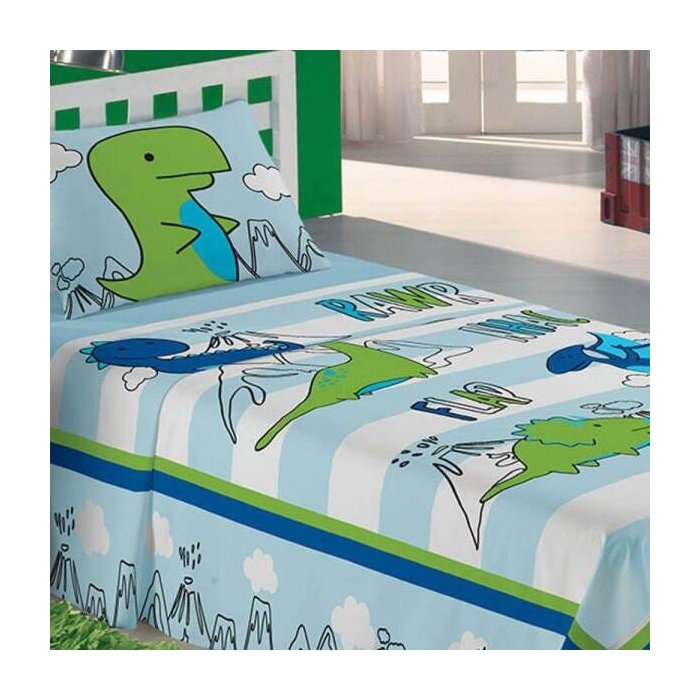 O jogo de cama da coleção Dino traz maciez em seu toque e fofura em sua estampa! Ele ilustra o encantador e misterioso universo dos dinossauros que irão trazer ainda mais alegria ao quarto dos pequenos. Em tons de azul e verde, estampa também nuvens e onomatopeias.