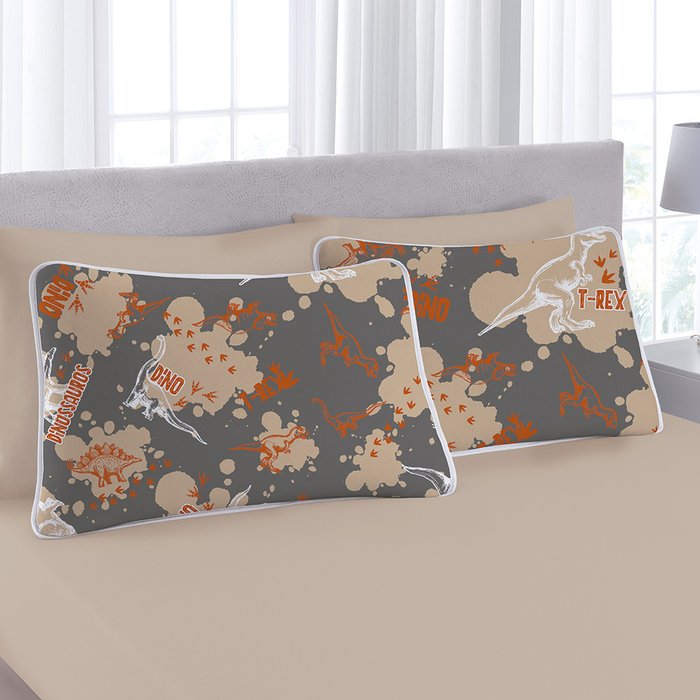 O Jogo de Cama T-Rex da linha Vivaldi Kids é ideal para as crianças que gostam de dinossauros e de aventuras. Além de decorar o quarto de forma divertida e criativa, ele une qualidade e beleza. Fabricado em malha 100% algodão com fio penteado 30/1 120g/m², esse jogo conta com duas fronhas estampadas e um lençol liso com elástico. Possui acabamento delicado, proporcionando harmonia, conforto e estilo para o quarto dos pequenos.