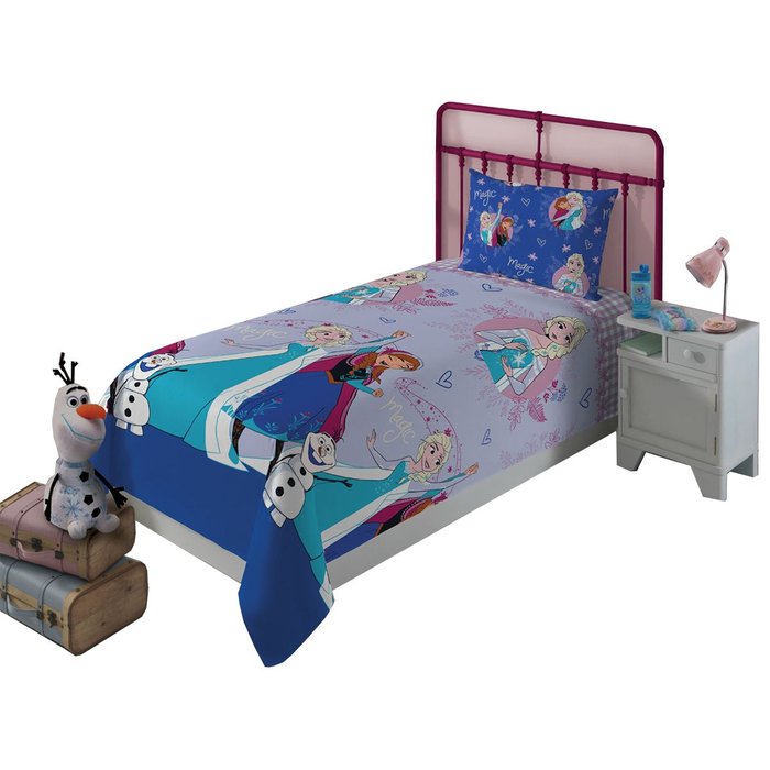 O jogo de cama da coleção Frozen carrega em sua estampa todo o amor e afeto entre a rainha Elsa, a princesa Anna e o boneco de neve Olaf, ilustrando a magia e encanto dessa congelante animação. Com um tecido de microfibra cheio de maciez, que não amassa, tem um ótimo caimento na cama e uma boa durabilidade, ele traz o jeito Lepper de transmitir o máximo de conforto e aconchego para as noites dos pequenos, proporcionando sonhos muito mais coloridos, mais leves, mais Lepper!