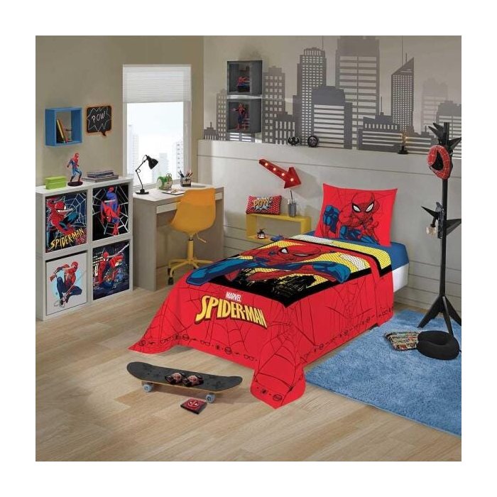 Descrição: Jogo De Cama Infantil Menino Spider-Man Com 3 Peças. O jogo de cama da coleção Spider-Man estampa o espetacular herói em meio a suas teias, sempre preparado para defender do perigo e viver muitas aventuras. Ele possui o jeito Lepper, com um tecido de qualidade, prático e resistente, que fica mais macio a cada lavagem, sem perder a intensidade das cores, além de decorar de forma prática e acessível. Tornando assim, a noite das crianças, junto de seu personagem favorito, mais divertida, mais alegre, mais Lepper.