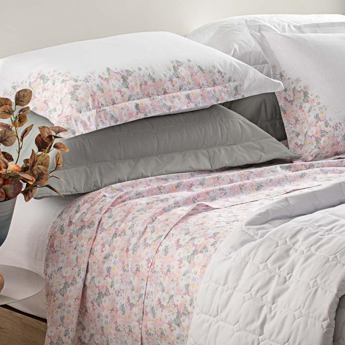 Os lençóis da linha Vida Bela Kacyumara são confeccionados sobre a base exuberante do tecido de algodão egípcio naturalmente hipoalergênico e percal 200 fios com tratamento especial que confere um toque de seda e conta ainda com propriedade anti-pilling evitando que o tecido forme bolinhas. Inspirado nos florais Liberty, Melori conta com uma coloração feminina que deixa o ambiente mais aconchegante e alegre, criando uma atmosfera acolhedora. Os jogos de cama da linha têm como características lençol de cima com dobra feita, lençol de elástico coordenado com o lençol superior e fronhas com 4 abas e estampa exclusiva localizada. Perfeito para vestir sua cama! Foto meramente ilustrativa. Contém: