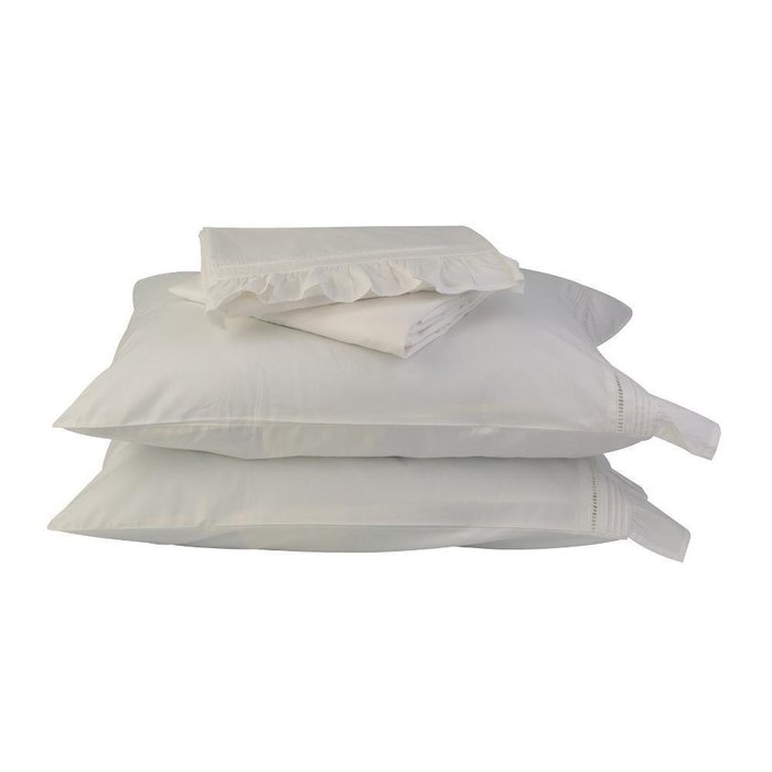 Feito em algodão 200 fios, é leve e possui um toque macio, além da dobra feita no lençol, que o destaca quando há uma colcha ou edredom por cima, dando muito charme à cama.