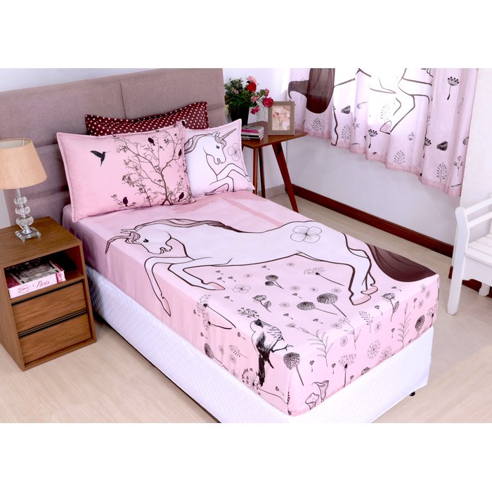 Jogo de Cama Lençol Infantil Feminino 3 Peças Solteiro Unicórnio Enxoval Menina