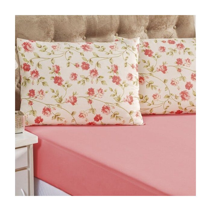 Jogo de Cama Lençol Lisse Queen Percal Misto 180 Fios 3 Peças - Salmão Floral Jade