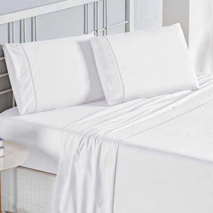 Jogo de Cama Lençol Queen 4 Peças 600 Fios Ponto Palito Peletizado Branco