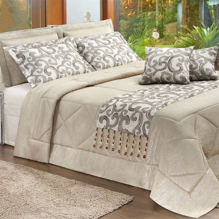 Jogo De Cama Mistico King 5 Peças Casa Dona Bege