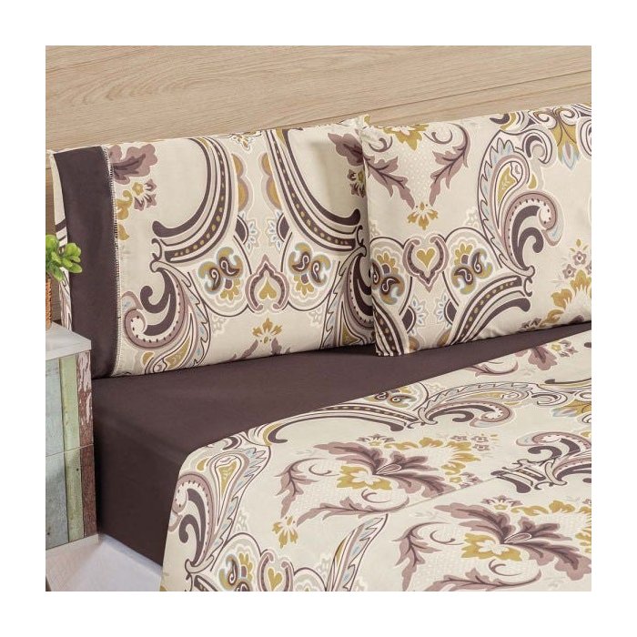 Jogo de Cama Naturale Solteiro Tecido Micropercal Arabesco 200 Fios 3 Peças - Tabaco