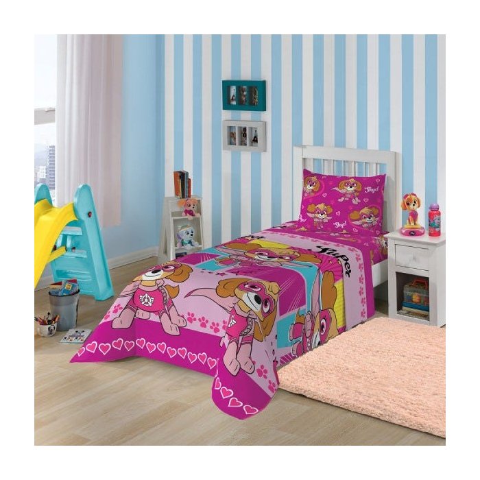 jogo de cama patrulha canina rosa 2 pçs lepper 1,40m x 2,20m