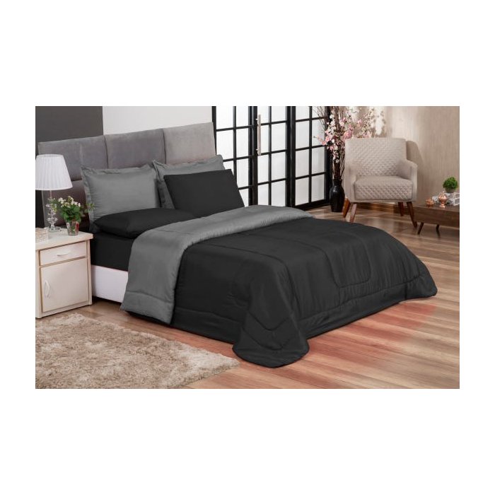 Jogo de Cama Primor Queen Kit 6 Pçs Preto e Cinza Casa Dona