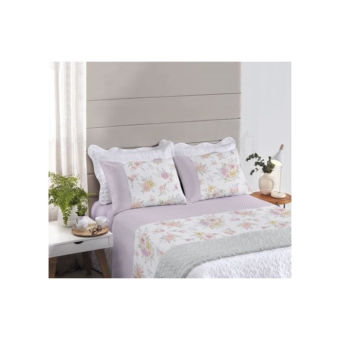 Jogo De Cama Queen 4 Peças 100% Algodão Heloísa Lilás Royal Santista
