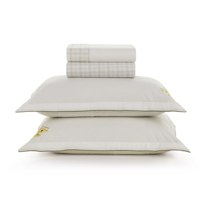 Inspirado na beleza inigualável de um campo de flores, o jogo de cama Florata (4 peças) traz estampa de flores do campo e fronhas com bordado em cordonê nas abas. O lençol com elástico ganha xadrez verde claro, adicionando textura e frescor à cama. Produzido em algodão 200 fios 100% brasileiro, é ideal para quem busca um ponto de cor sutil e romântico, com um toque contemporâneo na decoração.