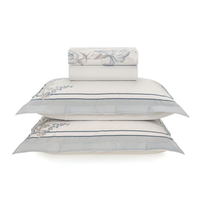 Desenho feito a mão, para uma cama de visual delicado e rico de detalhes. Esta é a cama Catarina construída em base de 200 fios e 100% algodão, ela tem o tecido mais encorpado e toque macio além de ser altamente respirável e hipoalergênico. O Jogo de cama Queen Catarina Karsten é composta por 1 sobre lençol estampado com dobra feita de 2,40m x 2,50m, 1 Lençol de Elástico liso de 1,58m x 1,98m x 40cm e 2 fronhas de 50cm x 70cm com estampa dimensionada com 4 abas de 4cm. O floral, é um desenho feito a mão, portanto é uma estampa exclusiva Karsten, que traz flores azuis com ramos verdes e dão o toque delicado ao quarto. O Jogo de cama pode ser completado com o jogo de colcha ou edredom Catarina ou ainda, podem ser adicionados complementos como a Manta e Almofada Lobato azul ou Movaz.