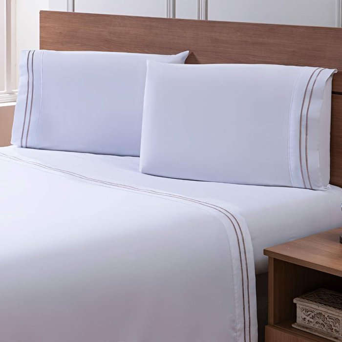 Jogo de Cama Queen Percal 300 Fios Bordado Festonê 4 Peças Branco/areia Niazitex 34142