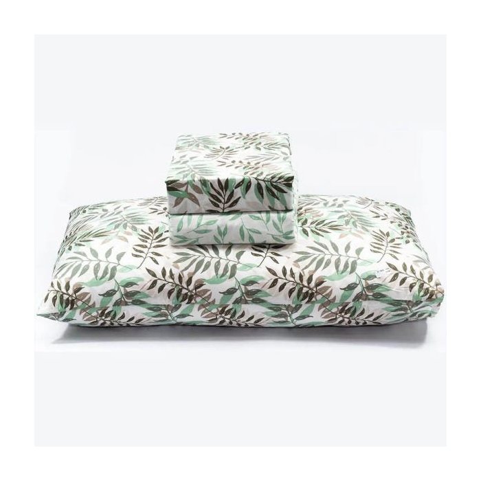 Além de ser um jogo de cama com um toque macio, esta roupa de cama possui estampas lindas. O jogo de lençol traz a combinação entre os tons de verde e marrom claro com detalhes em estampas de folhagem que deixarão o seu quarto muito mais bonito. O lençol de baixo é estampado com folhas verdes e as fronhas coordenado com o lençol de cima.