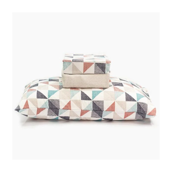 Além de ser um jogo de cama com um toque macio, esta roupa de cama possui estampas lindas e modernas. O jogo de lençol traz a combinação entre os tons de bege com estampas em peças geométricas em tons coloridos o que deixarão o seu quarto muito mais sofisticado. O lençol de baixo é na cor bege claro estampado e as fronhas coordenado com o lençol de cima.