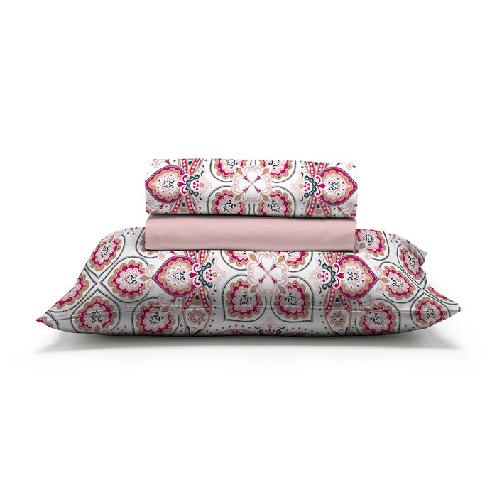 Jogo de Cama Solteiro 130 Fios Fiori - Laura (7320-3) Rosa/Madeira
