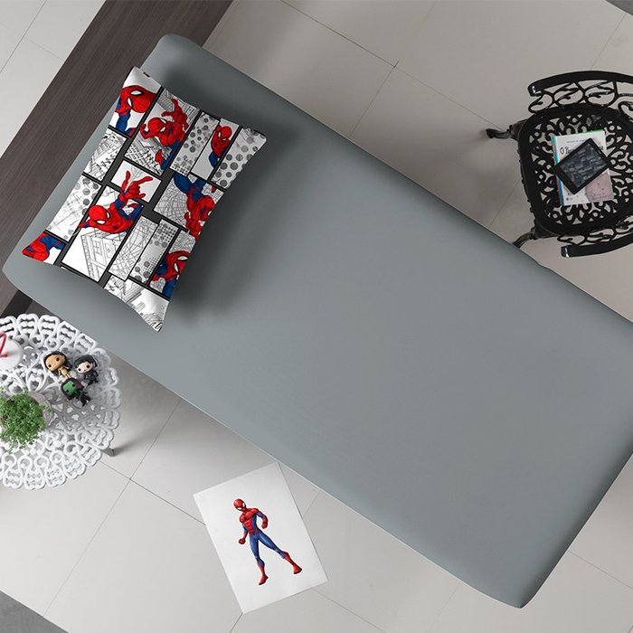 Jogo de Cama Solteiro Portallar Malha Misto 2pçs Spider Quadrinhos Cinza