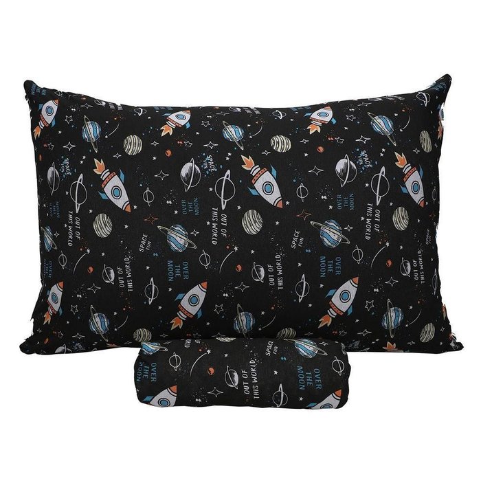 Conteúdo e Medidas: Jogo de Cama Malha Misto Estampado - Space Fun - 02 Peças