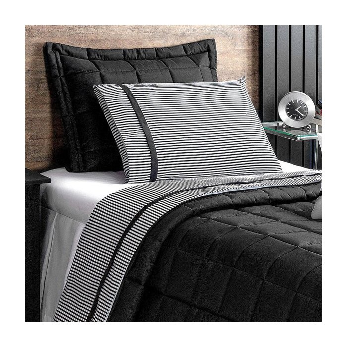 Jogo de Cama Solteiro Preto Listrado 3 Peças