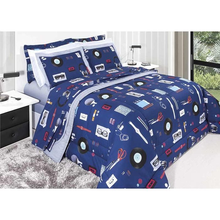 Jogo de Cama Vida Bela Casal Music Kacyumara 200 Fios 100% Algodão - Azul marinho