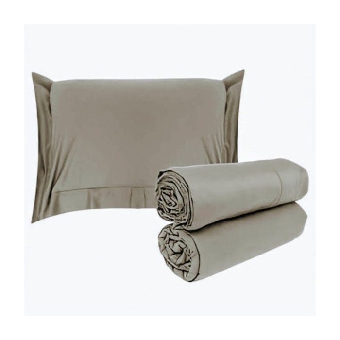 QUEEN: 01 Lençol 240 x 250 cm, 01 Lençol Queen c/elástico 160 x 200 x 40 cm, 02 Fronhas 50 x 70 cm.