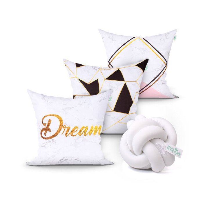 | Conteúdo da Embalagem | 03 - Capas de Almofadas Estampadas 45cm x 45cm com Zíper01 - Almofada Nó Escandinavo |