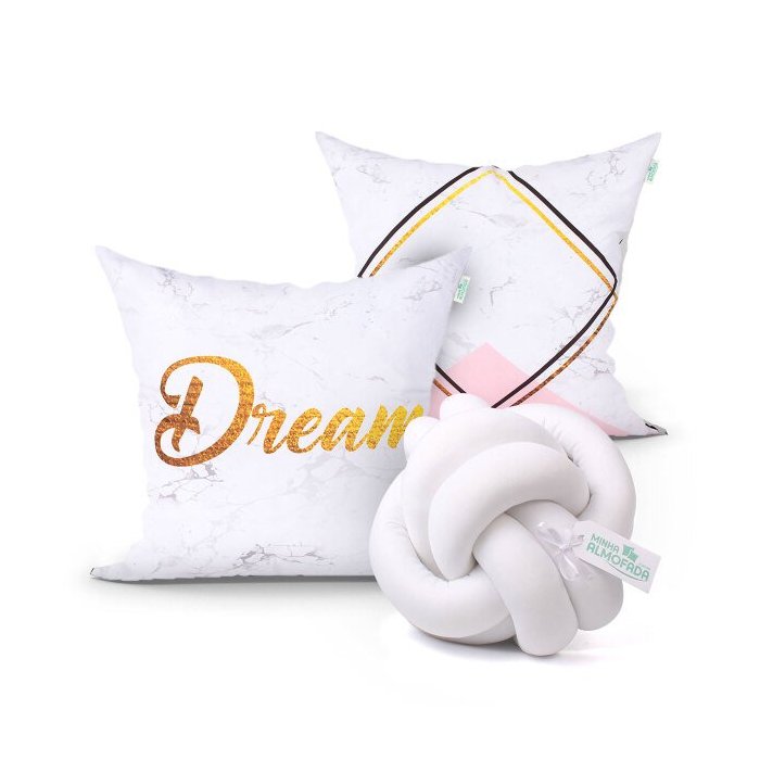 Jogo de Capa de Almofada para Cama Estampada Dream Kit 2 Unidades 45cm x 45cm + Almofada Nó Escandin