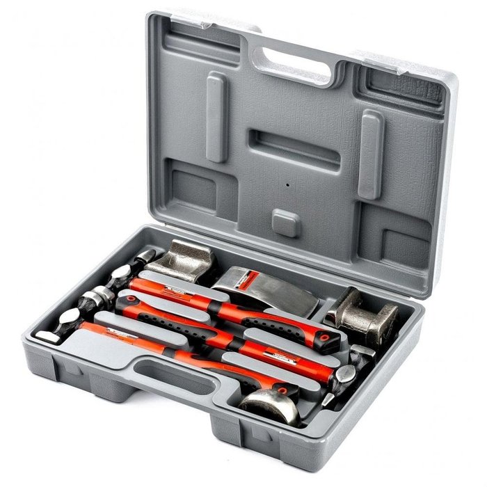 Jogo Chapeador para Reparos Automotivos MTX com 3 Martelos e 4 Tassos, indicado para Funilarias em Geral, Martelinhos de Ouro, Oficinas e Funilarias Artesanais.