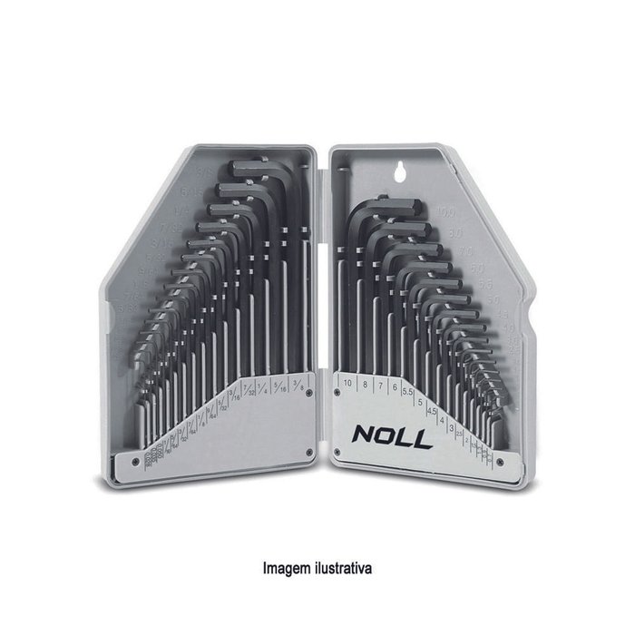 Jogo de Chave Allen com 30 Peças em Milímetros e Polegadas 0,7-10mm e 0,028-3/8pol Noll 374,0002