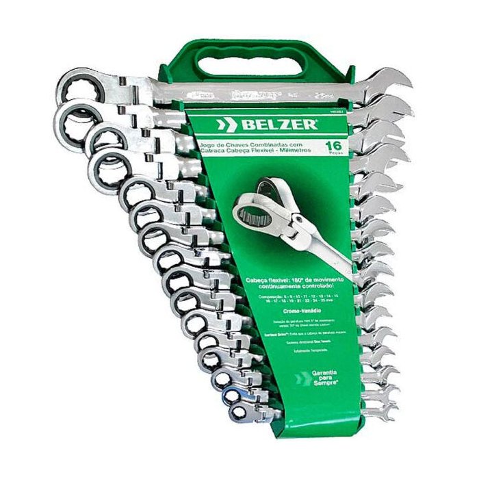 Jogo de Chave Combinada com Catraca 8 a 25mm Belzer 16 Peças 9902BJ 9902BJ