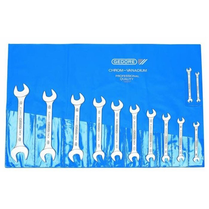 Jogo De Chave De Boca Fixa, Sinônimo De Força E Precisão! Com 8 Peças Fabricadas Totalmente Em Aço Gedore-Vanadium Sendo Elas Cuidadosamente Forjadas E Usinadas. Bocas Robustas Retificadas De Forma Precisa Na Dimensão Nominal Exata Para A Superfície De Contato Perfeita! Acabamento De Primeira Linha Niquelado E Cromado Sem Quaisquer Tipo De Rebarba Ou Imperfeições Nas Chaves. Extrema Resistência Contra Torção Não Sofrendo Estilhaços Por Sobrecarga, Minimizando O Risco De Ferimentos. A Sobrecarga Sobre A Ferramenta É Indicada Através De Deformações. O Manuseio Da Ferramenta É Altamente Seguro, Graças Ao Perfil Delgado Que A Mesma Possui, Alem Disso, Leva Consigo A Excelente Qualidade E Durabilidade, Adequada Para Utilização Universal. Medidas Diferentes Em Cada Extremidade.