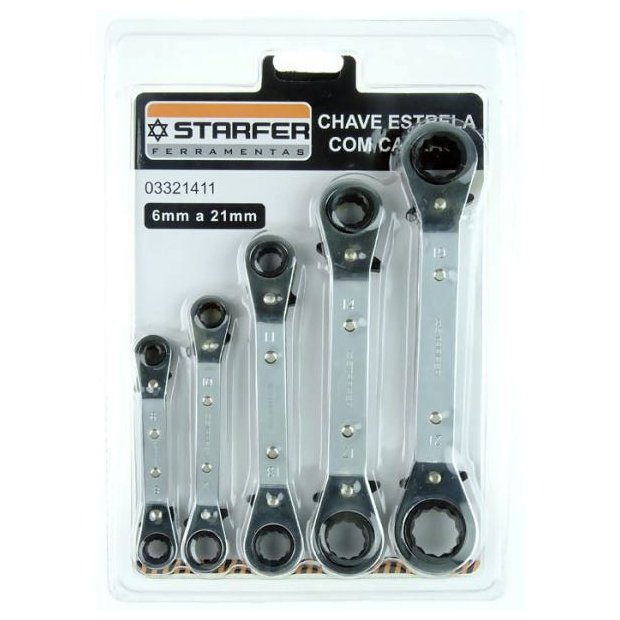 Jogo De Chave Estrela Com Catraca Starfer 06 a 21mm 5 Peças