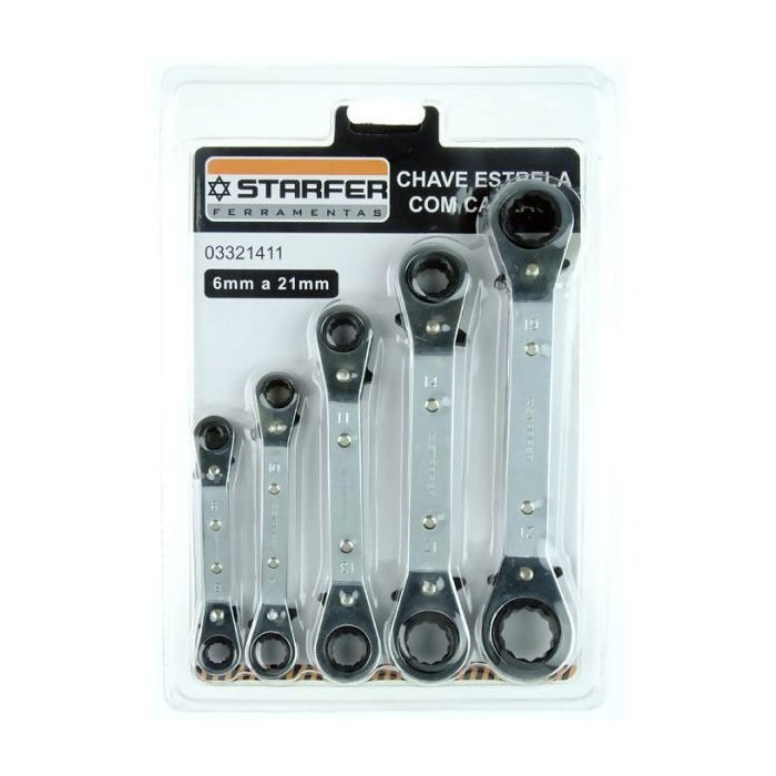 Jogo De Chave Estrela Com Catraca Starfer 06 a 21mm 5 Peças